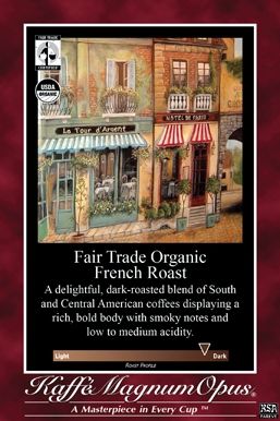 A delightful, dark-roasted blend of South and Central American coffees displaying a rich, bold body with smoky notes and low to medium acidity.