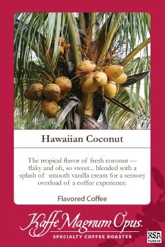 The tropical flavor of fresh coconut -- flaky and oh, so sweet... blended with a splash of smooth vanilla cream for a sensory overload of a coffee experience.