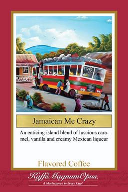 Jamaican Me Crazy Flavored Coffee, an enticing island blend of luscious caramel, vanilla and creamy Mexican liqueur.