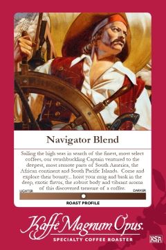 Sailing the high seas in search of the finest, most select coffees, our swashbuckling Captain ventured to the deepest, most remote parts of South America, the African continent and South Pacific Islands. Come and explore their bounty... hoist your mug and bask in the deep, exotic flavor, the robust body and vibrant aroma of this discovered treasure of a coffee. |