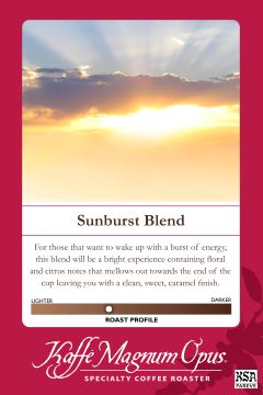 For those that want to wake up with a burst of energy, this blend will be a bright experience containing floral and citrus notes that mellows out towards the end of the cup leaving you with a clean, sweet, caramel finish. |